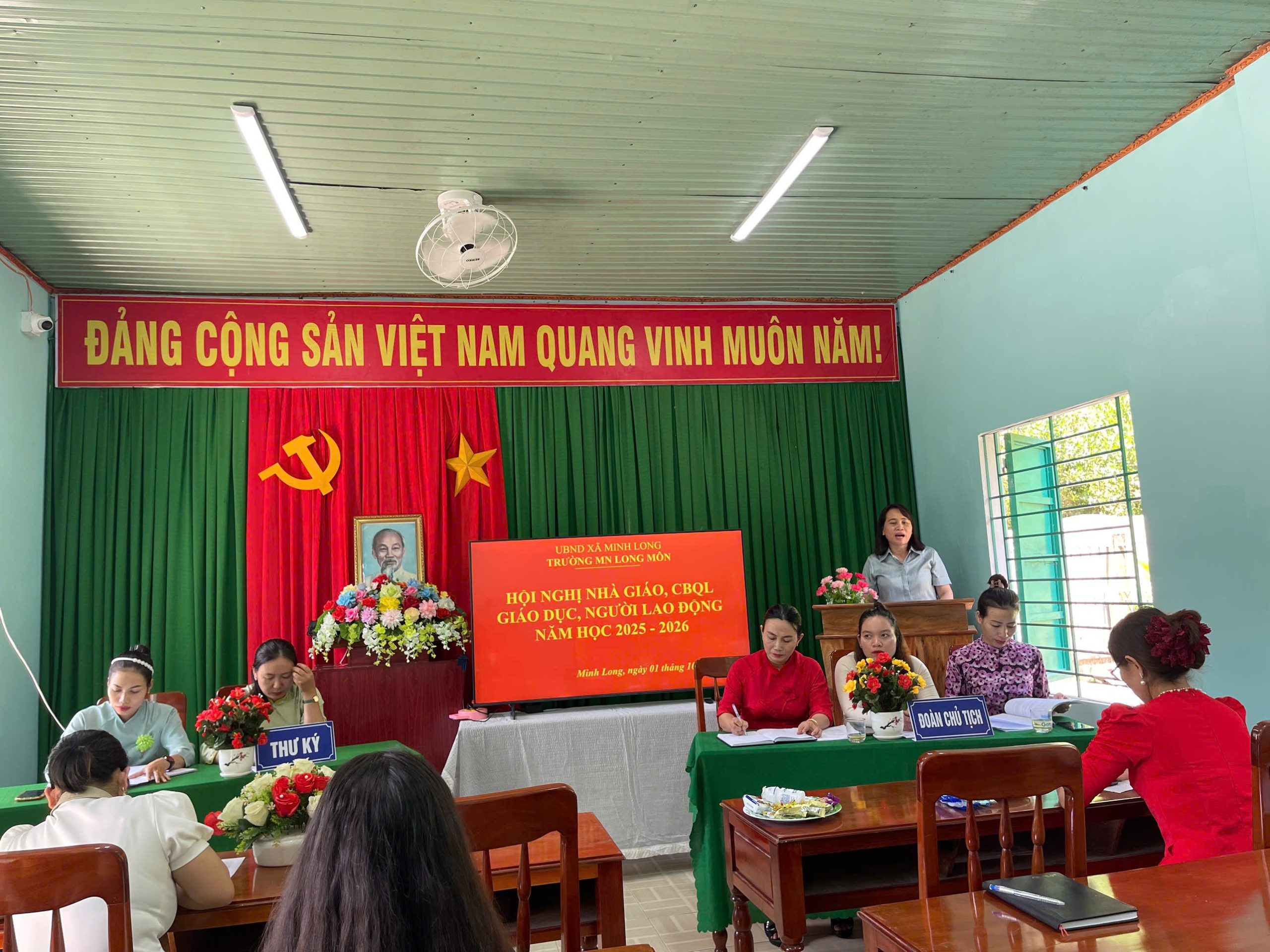 👉Dưới sự chủ trì của Đoàn Chủ tịch, Hội nghị nhà giáo, QLCBGD, người lao động năm học 2025-2026 của trường MN Long Môn diễn ra thành công tốt đẹp.